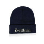 Eine wärmende Haube in dunkelblau für die kalte Jahreszeit mit gesticktem Zwettler-Schriftzug.